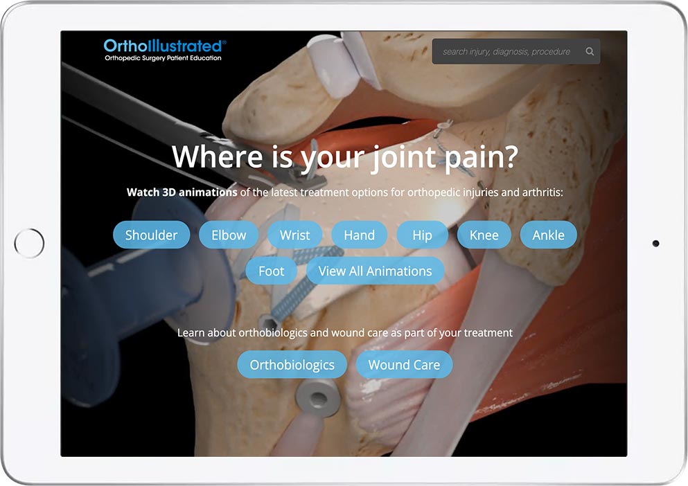 En plus du site Arthrex.com, Arthrex propose OrthoIllustrated, un site Internet dynamique visant à éduquer les patients.